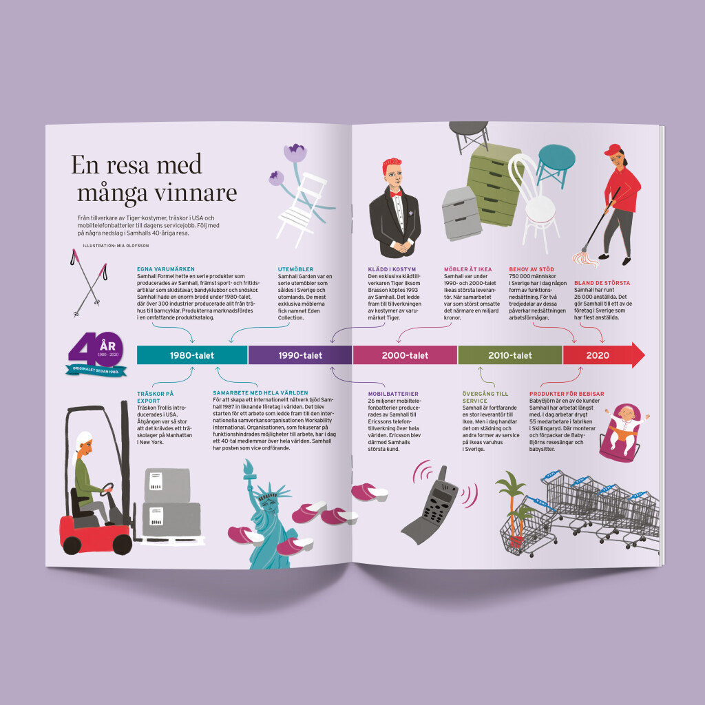 Editorial illustration for the 40 years anniversary publication of the Swedish company Samhall.