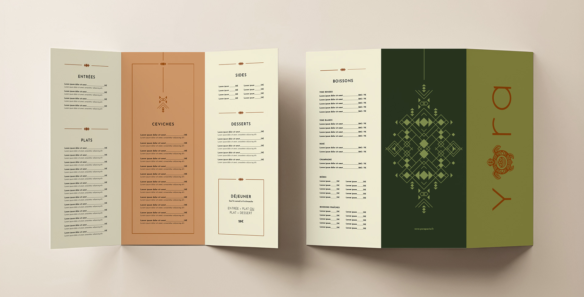 I developed the visual identity for the restaurant, including the logo and a proposed graphic system intended to support menus and communication materials within a premium retail environment. The work focused on establishing a strong and recognisable visual foundation for the brand.
